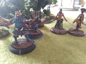 samurai clad in full battle armour surrounded by a small band of Ryu retainers.