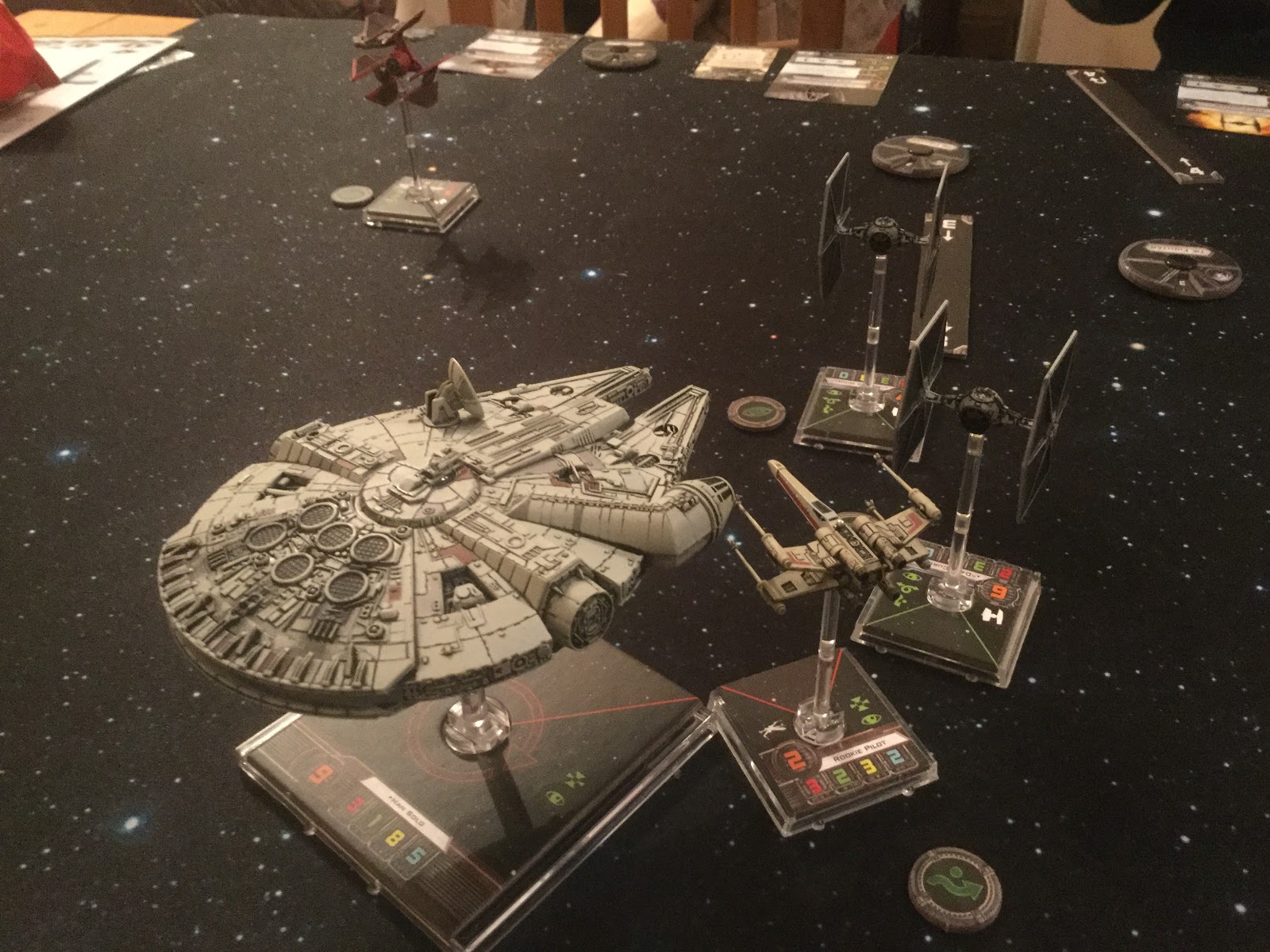 Yep, X-Wing is a favourite game of mine too. I'm rocking the old TIE/LN Squadron, myself. Twelve TIE fighters with nothing but a few modifications, unique pilot talents and a number of elite upgrades. Very satisfying when you win with just TIE fighters, and using them really cuts out the need for all the other types of upgrades (though I also have a TIE 'Punisher' Flight, which needs a 101 upgrade cards!).